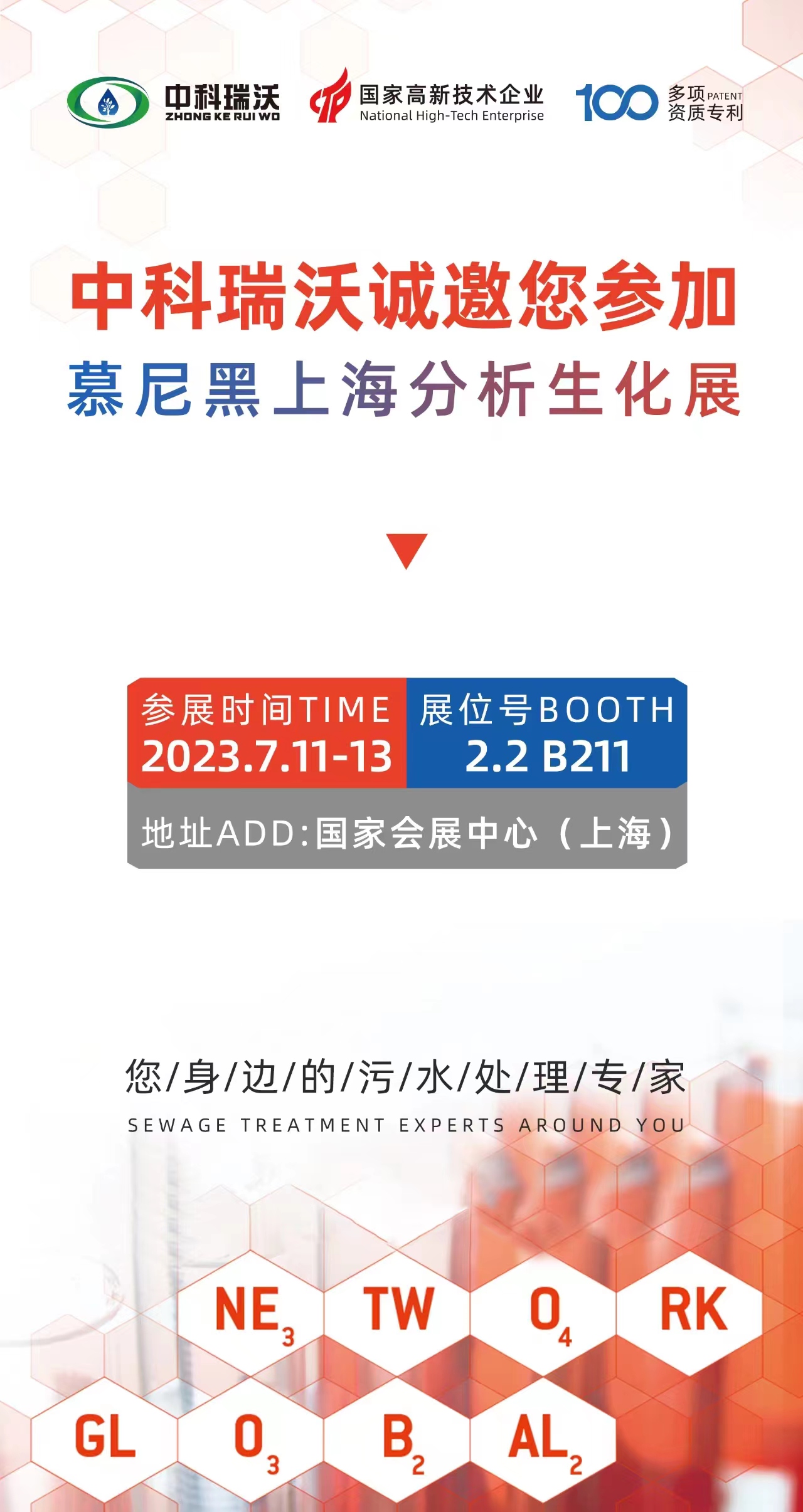 慕尼黑上海分析生化展將于7月11日-13日開(kāi)展,為期三天,誠(chéng)邀您蒞臨國(guó)家會(huì)展中心中科瑞沃2.2 B211展位,我們將為您提供專(zhuān)業(yè)系統(tǒng)化的實(shí)驗(yàn)室污水解決方案!